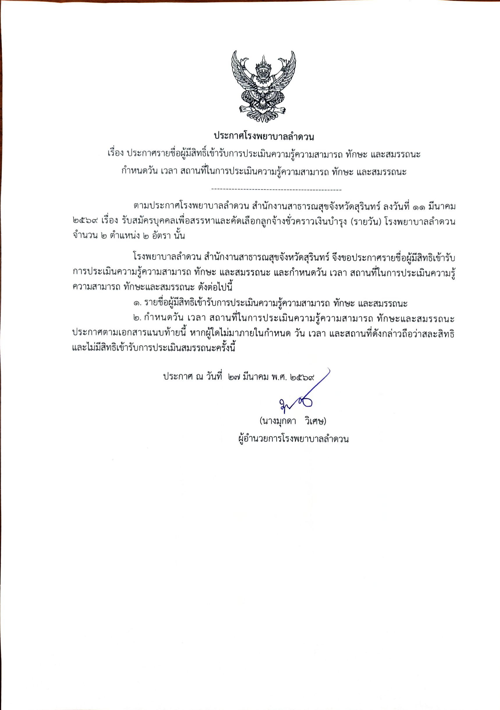 2. ประกาศโรงพยาบาลลำดวน